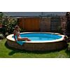 SANTURO Keilsteine können in geschwungenen Formen und beliebigen Bögen vermauert werden bis hin zu geschlossenen Kreisen, beispielsweise als Teichumrandung oder Einfassung für einen Pool. Sie sind entsprechend der Landhausmauer auf beiden Seiten bearbeitet.
