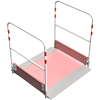Seitengeländer sind mit rot-weiß-roten Reflektorstreifen ausgestattet. Für den