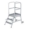Podesttreppe einseitig begehbar mit Rollen und Griffen Aluminium geriffelt 3 Stufen