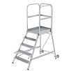 Podesttreppe einseitig begehbar mit Rollen und Griffen Aluminium geriffelt 5 Stufen